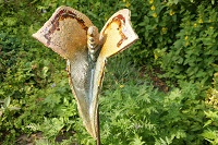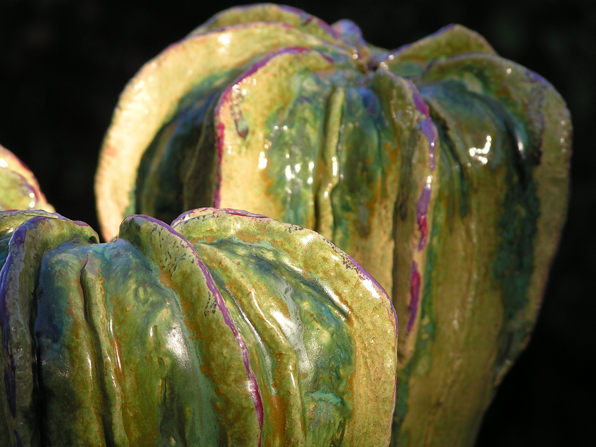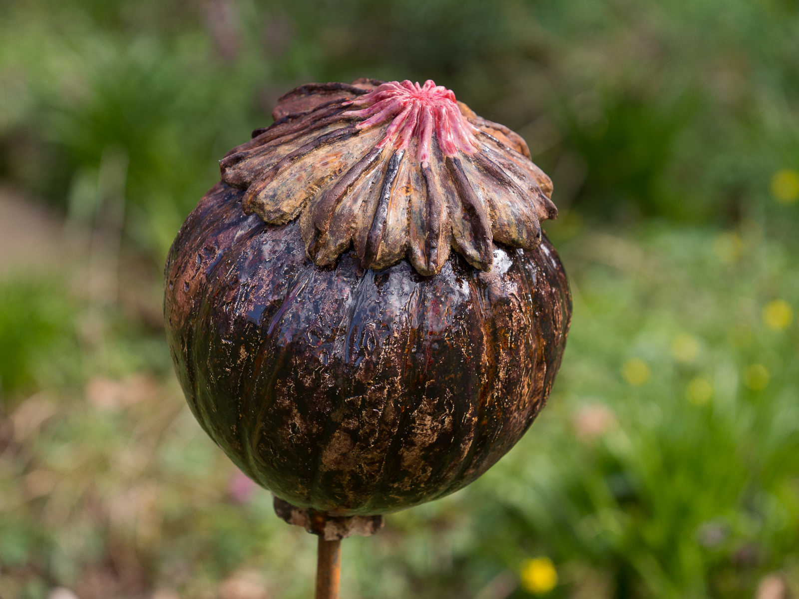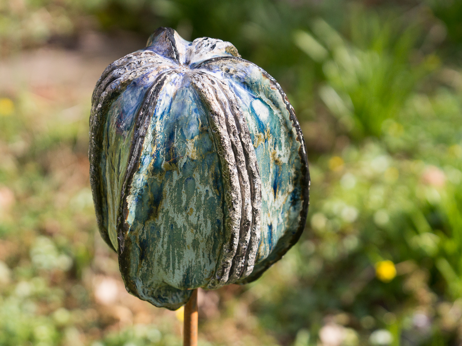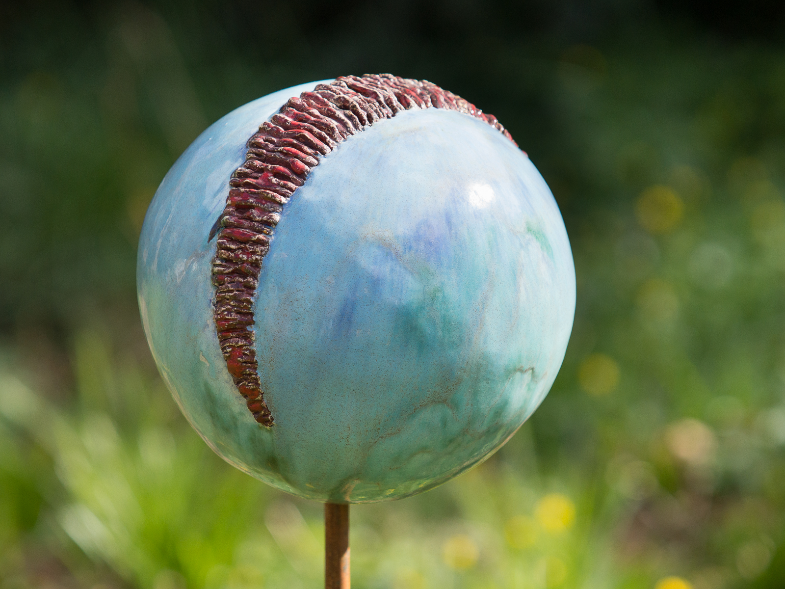 Voor de tuin maak ik vlinders, bollen en groeivormen. Mijn tuinobjecten plaats ik op ijzeren staven, die in de grond worden gestoken. In de lente steken ze nog boven het prille groen uit. Enkele maanden later zijn de tuinobjecten een onderdeel geworden van een fleurige zomertuin. Soms maak ik drie bijna dezelfde bollen of groeivormen, die als groepje in de tuin worden geplaatst. De staven lever ik bij de tuinobjecten en verroesten mooi in de loop der tijd.